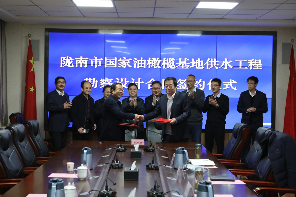 11月19日,水電設計院與隴南市水務局舉行隴南國家油橄欖基地供水工程勘察設計合同簽約儀式,水電設計院黨委副書記、總經(jīng)理陳劍,隴南市龍嘉水投公司董事長王平代表雙方簽約。水電設計院黨委書記、董事長朱發(fā)昇,隴南市水務局局長司寶平、副局長何松居,水電設計院相關領導、生產(chǎn)經(jīng)營管理部、工程設計二院負責人及相關人員參加簽約儀式。